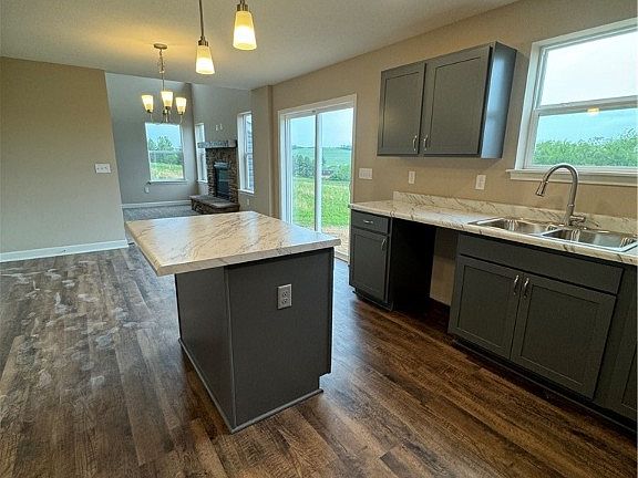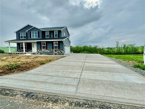 This open air floor plan, currently under construction by Wayne Homes, offers many upgrades throughout! The main level is beautifully designed with a den, laundry room and powder room all located on the first floor, and a convenient 2 car attached garage. The kitchen boasts a center island overlooking the dining room and great room, makes hosting friends and family effortless! The stone fireplace is sure to impress! The Great Room enjoys a dramatic two-story ceiling and overlooked by an upstairs loft. The owner's suite plus two spacious bedrooms are located on the second floor. The large front porch is the perfect place to relax and gather with friends. Beautiful concrete driveway is included and is now completed.