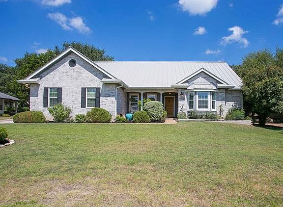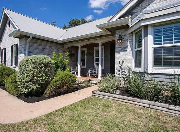 Recently remodeled 1-story w/approx $48K in improvements: steel fence, full gutters, metal roof, windows, interior/exterior paint, landscaping, recessed lights. Welcoming front porch entrance to open concept living w/ lg windows, high ceilings. Modern kitchen cabinets, granite countertops, stainless appliances & french doors open to back patio. Lg backyard w/potential for pool, playscape, added decking. Low taxes, no HOA. Travis Schools. Minutes to parks, trails, lake access, shops, dining, golf & more.