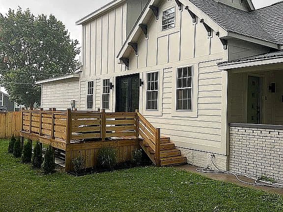 A spacious deck just outside the living room for cook-outs or family gatherings.
