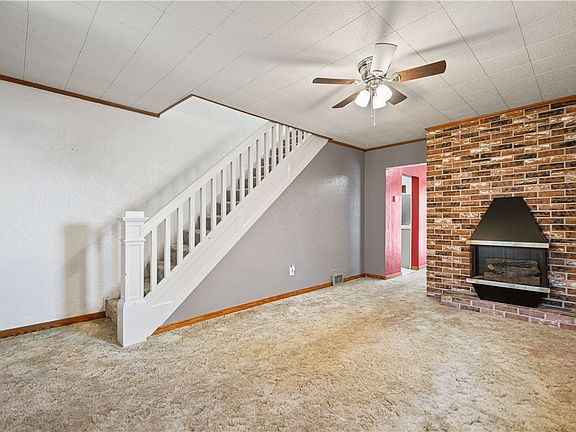 Welcome to this three bedroom, two story home located in North Charleroi. Walk through the front door to the cozy living room with electric fireplace. To the left, leads upstairs with large master bedroom with two closets. Updated large bathroom in between the bedrooms. Second bedroom is located across the hall way. Back down stairs, off from the living room, to the dining room where you can host your family dinners. Slide the door open to the third bedroom or make into your perfect office/den/walk in pantry. Step into the large updated kitchen with SS appliances. Off from the kitchen is the access to the unfinished basement/laundry room two storage rooms. Also off from the kitchen is another room that could be used for a pantry/mudroom/office, then step out onto the new deck/stairs to the back yard, but before checking out the flat fenced in yard, look up and enjoy the view of the river. Then head to the two car detached garage. Located near i70