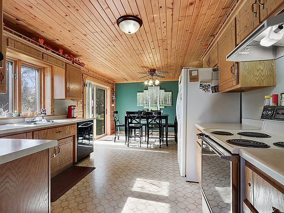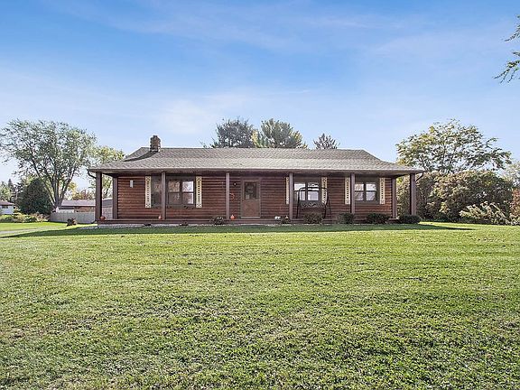 COUNTRY FEEL, LOG HOME in the city...WOW! LOVE the large, almost .5 acre lot set back off the street. Over 1500SF of living on the main floor, 1st-floor laundry as you come in side door from outside, a FRONT porch that spans the entire front of the house, living room w/wood burning FP, dining with patio doors, kitchen w/appliances & a pantry or mudroom...SO COOL! Master suite w/full bath. Wood ceilings & 6 panel doors. Full basement that is stubbed for half bath, has bilco doors to the outside for bringing stuff in, 26x36 detached garage. Close to parks, schools & shopping. MOVE-IN READY.