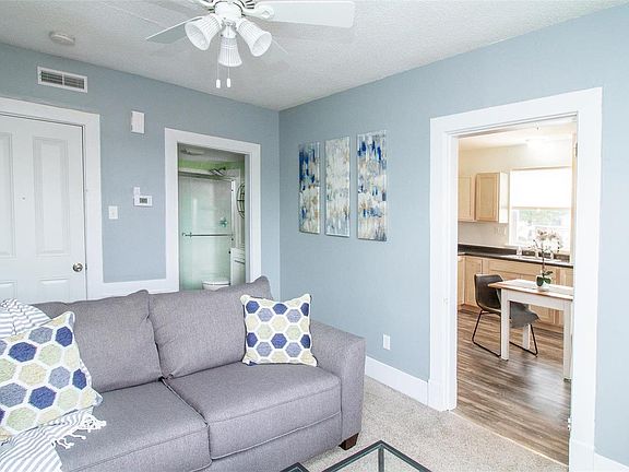 Cute and clean upper level 1 bedroom, 1 bath apartment comes FURNISHED! Live comfortably with your cozy living room, full bedroom, full bath, and eat-in kitchen. Light and airy! Kitchen comes with stove, dishwasher, built-in microwave, disposal, and refrigerator. You'll love the expanded shower, rain shower head, Wainscoting, and upgraded vanity in the bathroom. Stackable washer and dryer installed for tenant use. This is an all-electric apartment. All utilities included in rent. NO SMOKING OR PETS. All prospective tenants are subject to a credit and background check. Cost of background check to be tenant's and approval at sole discretion of the owner. $1,000 security deposit collected at time of lease signing. Close to shopping, dining, riverfront trails, etc...