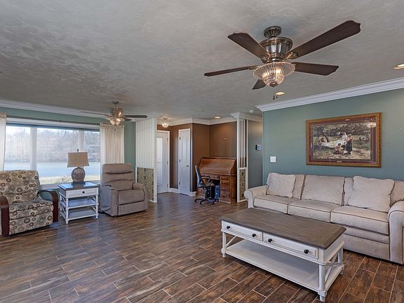 This stunning 3BR/3BA ranch-style home offers a picturesque water view and a range of desirable features. Step inside to discover a semi open floor plan that seamlessly combines the kitchen, dining room, and living room, creating a perfect space for entertaining and everyday living. The kitchen is a chef's dream, boasting an abundance of custom cabinets, granite countertops, and a large farmers sink. Stainless steel appliances, including an insta-view refrigerator, add a touch of modern elegance. The kitchen also features a gas stove in the island and an eat-in bar, providing ample space for meal preparation and casual dining. The dining room, living room, and kitchen flow together effortlessly, creating a spacious and inviting atmosphere. This layout is perfect for hosting gatherings and enjoying quality time with loved ones. The home offers two primary suites, each featuring gorgeously tiled showers. The guest bedroom and guest bath provide additional space for family and friends.
