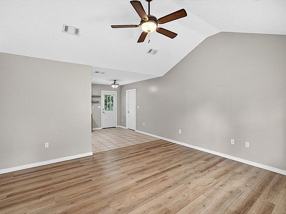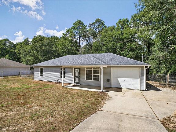 Set on a spacious half-acre lot in the heart of Crestview, this 3-bedroom, 2-bathroom home offers both comfort and room to grow. The living room with vaulted ceiling. Eat-in kitchen featuring stainless steel appliances and plenty of cabinet space.Flooring has been updated with LVP in the living room and hallway, tile in the wet areas, and carpet in the bedrooms. The bathrooms have a modern feel, featuring vanities with rich espresso cabinetry and updated finishes.Additional highlights include a large laundry room with washer/dryer hookups, and a one-car garage. Located within a short commute to schools, shopping, 7th Group, and Duke Field.