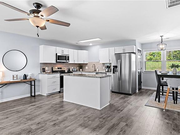 This move-in ready, one-level home offers the perfect blend of modern updates and comfortable living. Featuring 3 bedrooms and granite countertops in both the kitchen and bathrooms, this home has been completely remodeled within the last five years. The roof and heat pump were replaced in 2021, ensuring peace of mind. Enjoy the bright, open-concept living space where the kitchen, dining area, and living room flow seamlessly—ideal for entertaining or everyday life. The kitchen is outfitted with sleek stainless steel appliances and stylish finishes. A private den at the back of the home provides a quiet retreat, along with a separate laundry area for added convenience. Step outside to a spacious backyard with a graveled fire pit area, perfect for relaxing evenings and outdoor fun. Conveniently located close to dining, medical facilities, shopping, and easy highway access, this well-maintained home has everything you need in an unbeatable location.