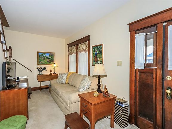 Totally rehabbed in 2013 with a 2 bedroom addition. Original woodwork throughout the first floor. Hardwood floors under carpet. Corner built in hutch in the dining room. Covered front and back porches to relax outside.Basement is ready to finish. Updated kitchen with stainless steel appliances. One car detached garage. Washer and dryer and kitchen appliances included.