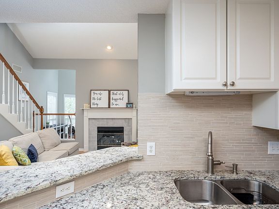 - Kitchen Features: Breakfast Bar, View to Family Room, Stone Counters, Cabinets White