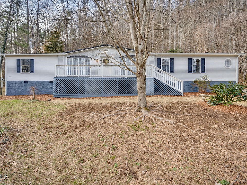 Newly renovated home in Erwin on 1.5 acres! This one-level home features new flooring throughout, a large front porch, and lots of space to spread out! From the entry hall is a formal dining room, with built-in cabinets, and a large living room - each with bay windows to maximize natural light. The kitchen has newly painted cabinets, stainless steel appliances, an eat-in bar, and a skylight. It is open to the cozy den with its stone, gas fireplace. The split floor plan places the primary suite with 2-closets and an ensuite bathroom on one side of the home and the other two bedrooms and full bathroom on the other side. If that's not enough space, there is even a bonus room that could be used as an office, craft room, or even another bedroom. There is also a ½ bath and a laundry room which exits to the covered back deck. The home sits on a wooded lot providing lots of privacy but is still conveniently located near interstate access and the town of Erwin.