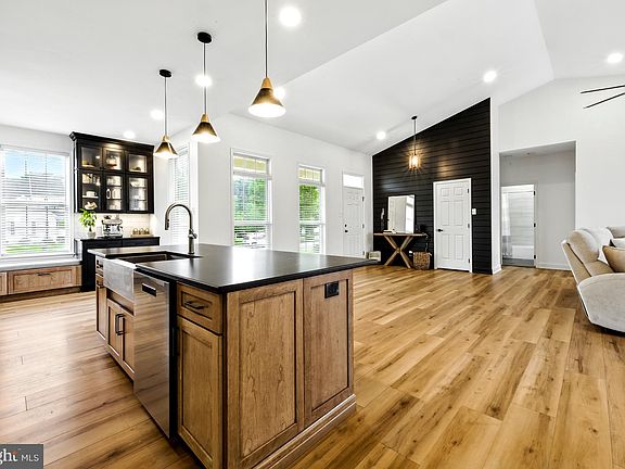 Welcome home!! Located in Monroeville, Elk Township, this beautifully maintained rancher offers three bedrooms, two full bathrooms, and approximately 2,050 sq foot of living space situated on a 1.1 acre lot. It all starts with the charming curb appeal; a recent face lift of fresh paint to the front elevation and shutters delivers a pop! The front door you ushers you into a spacious great room, kitchen, and dining room open floor plan adorned with luxury vinyl flooring and high cathedral ceiling. No expense was spared in the newly renovated kitchen offering a large island with inset sink, quartz counters, upgraded cabinets, subway tile backsplash, and stainless steel appliances. The luxury vinyl floors continue into the sizable main suite with shiplap feature wall and updated, spa-like on suite with soaker tube, glass shower, separate sinks, and attached custom walk in closet. The two additional bedrooms are on the left side of the home separated by an updated full bath. The conveniently located first floor laundry room leads to the partially finished basement offering storage or the possibility of additional living space. Plenty of parking on the long oversized driveway along with the two car, side entry garage. Turn the back yard and patio space into your own oasis!