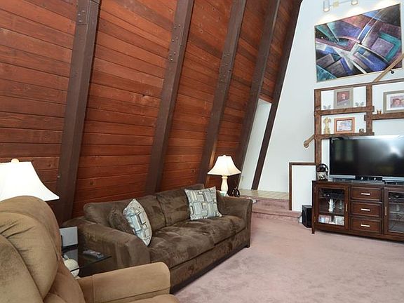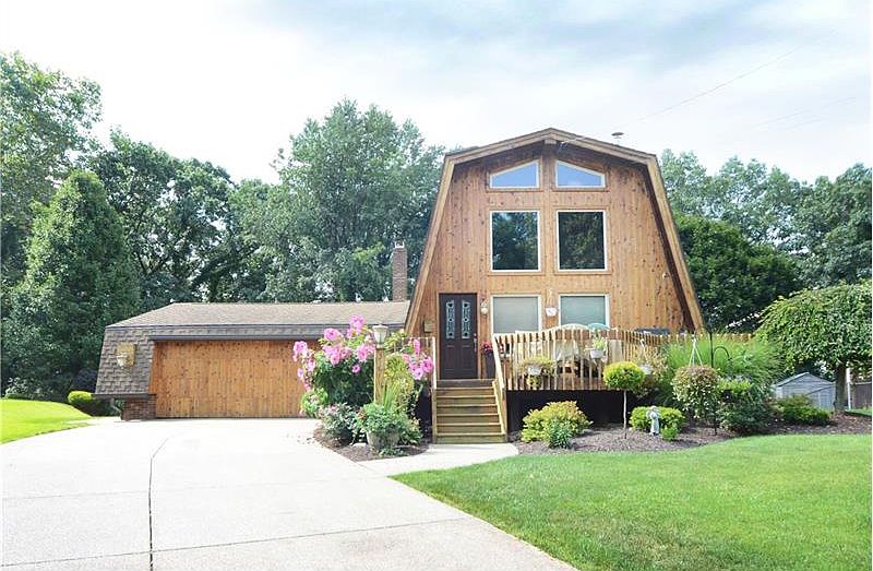 Unique chalet with soaring ceilings and window wall located on secluded cul-de-sac. Spacious 20x16 master suite, updated bath, beautiful wall-to-wall stone fireplace in Fam. Rm. with new sliding door to private rear concrete patio, oversized 32 X 24 2 car garage, Trane hi-efficiency gas furnace.