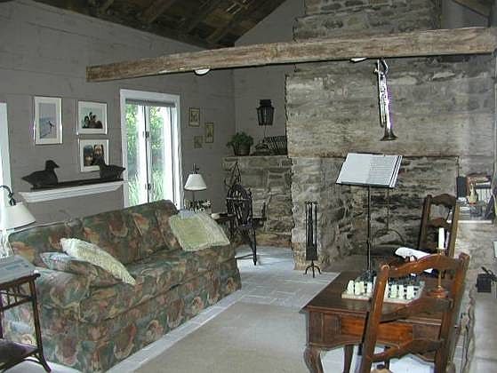 Some time around 1840 a farmhouse was built for a cattle farm in Hamilton Twp. The current owners, the Dunbars, have found records dating back to 1850 in the attic of the Monroe Cty Courthouse. There may be earlier records in the Northampton Courthouse as Monroe Cty was once part of Northampton. In 1969 the Dunbars purchased the property as a weekend getaway from the rigors of city life. They spent many pleasant hours restoring & renovating the home. Along the way they were surprised by details found in the home. Handmade bricks used to build the house were brought by horse & carriage from Philadelphia & are of double thickness. The stone basement, it has been rumored, was used during prohibition as a distillery and a pit (located on a neighbors property) was used for storage. Oh what fun! There are exposed chestnut pegged beams (no nails) & random planked pine flooring. The Dunbars, being artists & musicians, recognized the superior quality & special home they were uncovering. They restored & left the original solid wood paneling & doors. They found and retored inner walls of chestnut wood board over board with lattice & plaster. During winter the original occupants would use the living room as the kitchen and when the weather turned warmer would move to the summer kitchen. Having modern conveniences available, the Dunbars made the summer kitchen into the music room but kept the original exposed brick, fireplace and even the sleeping loft. The Dunbars added a beautiful, wrap around great room with floor to ceiling windows, Terra Cotta tile floors and full length glass & wood doors. The original brick exterior wall of the home was left as an interior wall. The doorways, and the pass through from the kitchen, were originally the exterior windows. Beautiful gardens & grounds still offer privacy and tranquility. A natural spring services the home & the original spring house still stands. Views at the top of the hill include rolling hills, a pond and stream, and homes built later as sections of the original property were given or sold to family & friends. The original barn stands on a neighboring property and a story has been told that a granddaughter of Jacob Houck wedded Earl Dennis, mayor of Stroudsburg, who would walk from the farmhouse to Stroudsburg and back. So no doubt while set in a peaceful & rural setting the home is close to modern day necessities like shopping, 1st class dining, local attractions & accessibility to major roads.