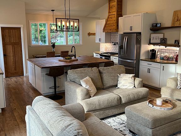 New modern downtown cda farmhouse rancher available. Fully furnished (option w/out furniture as well)on a beautiful and quite corner lot. This home was built in 2020 and is located in the heart of downtown Coeur D' Alene, only 3 blocks from Sherman Ave. Everything is brand new! 3 beds 2 baths with open concept living and oversized chef's kitchen. The master suite has a large walk-in closet and a large bathroom with a walk-in shower. The remaining two rooms are currently setup as a secondary bedroom and an office that can be used as a third bedroom. This home also includes a secondary full bathroom, walk-in pantry, gas range and dishwasher. Furnishings include: washer and gas dryer, refrigerator, 3 beds (King, Queen, and Twin), 3 piece living room set, dining room set, bar stools, and 3 smart TV's. Enjoy beautiful sunsets from the large furnished front porch or the two oversized decks in the backyard. Outdoor space includes a large storage shed, large fully fenced yard (front and back) and off street parking. Spectrum high speed internet, water, sewer, Avista and garbage included. Non-furnished rate negotiable. Great for dogs with a fenced yard. Off street 2 car parking pad. $3700 flat rate. 6 to 12 month lease option. Owner pays all utilities. Including trash and internet.