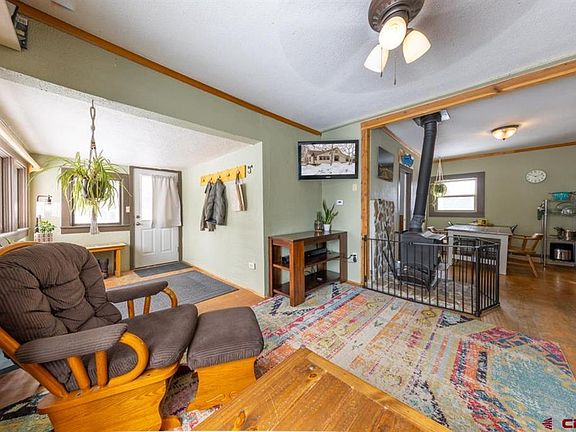 Perfectly situated multi-family residence adjacent to community schools and downtown Gunnison. Main floor residence features two bed one bath on a corner lot with mature landscaping and big backyard! Entrance to main home leads to an open living area with cozy wood burning stove. Through the living room is an eating nook which leads into the kitchen Adjacent to the living room is a bedroom/office with attached bathroom. Through the office is a storage room and access to the backyard. The finished basement is accessed via separate entry which offers nice guest space or long term rental income. One bedroom with three-quarter bath. Smaller kitchen and eating area makes this a perfect rental space with multiple uses. Shared laundry between units in the side-mudroom/basement apartment entry way. Large fenced backyard space with shed and one car garage in the alley. Property enjoys access and ditch rights from the city irrigation ditch running through the front yard. Atmos: $235 / $35
