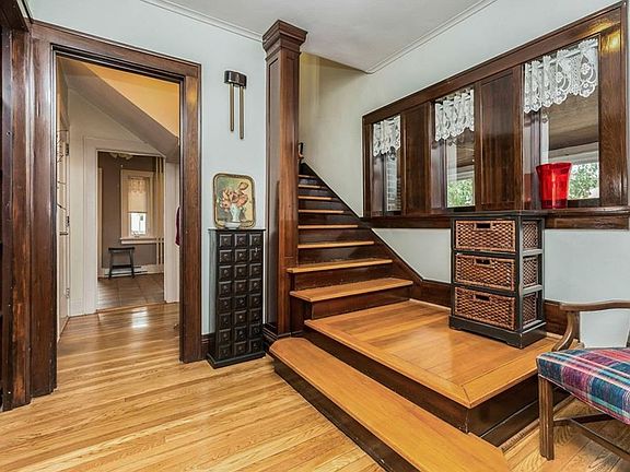 This home is truly unique and exudes character and charm! This all brick, 2 story, 4 bedroom, 2 bath home has all of the space you'll want, and all of the updates you'll want. The foyer welcomes you into this home, with sights of the beautiful staircase, hardwood floors, and pocket doors leading to the large living room featuring built-ins and fireplace wall. Hardwood floors flow into the large dining room, which opens to the updated kitchen (including SS appliances). Off of the kitchen, you can escape to the 3 season room with all new windows and tile floors. Upstairs continues to charm with the hardwood floors featured in all 4 bedrooms. You'll also find a full bath, including a quaint sitting room/sun room off of it. The lower level has tons of space, and is ready for finish. With gorgeous landscaping, including a variety of trees and plants, and huge corner lot, this property is the complete package...inside and out!