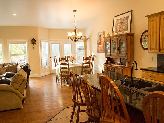 (208)- Beautiful brick and vinyl siding home with beautiful mature landscaping and sprinkler system, front and back. Fit four cars in Garage #1, and one in garage #2. Garages are heated. Spacious vaulted Great Room, Large Kitchen and Dining, opens up from the formal entry. Kitchen has slides behind lower doors and corner carousel. A bay window w/French doors, leads out to deck overlooking a pretty little woods and spacious backyard. Gas fireplace has a beautiful surround & mantle, and large TV space above. Main floor has large master suite w/in suite bath, soaker tub, arched stone and tile shower & walk in closet + two more large bedrooms and another full bath. Large upstairs laundry and mudroom are off the kitchen. Basement is fully functional as a separate unit, mother-in-law set up, or entertainment area. It has 3 large bedrooms, 1 Jack and Jill bath, a game or exercise room, laundry and furnace room, cold room, full Kitchen, and a theater room. Walk out to covered patio and landscaped fire pit area. Features: Built in 2010 with basement finished in 2015. 3,746 sq ft. / .52 Acreage Sought after neighborhood across from Rigby High Sch. Great Neighbors! School bus stops out front, to the right. Bedrooms 6 - w/large closets, + Game Room + large Theater Room Master Bedroom suite has walk in Arched Stone Shower, large Soaker Tub, Walk in Closets in upper and lower master bedrooms 1 Gas Fireplace, Natural Gas Heating throughout Double Oversized garage fits four cars easily + storage, + 1 single car garage Bay window w/French doors onto back Deck Tiled entries, both kitchens, all Baths and Laundry room Hardwood Floors main level Granite tile Countertops in Kitchen and main floor baths Double Ovens, Large Island, New Microwave, and New Dishwasher on main floor. Blackstone double sink. Slide drawers behind lower cabinet doors, 3 sets, and one corner carousel Gas Stove and double oven on main floor, Elec. stove, micro and oven in downstairs kitchen Main floor appliances are all stainless steel Walk out basement to out door entertainment area w/ Covered Patio and Fire Pit. Landscaping, path and outdoor stairs Well Water, the best in Idaho Complex Septic System Beautiful landscaping and natural areas, full Sprinkler system Long driveway good for basketball Trees – Chinese elm and 1 cherry tree Large Raspberry patch, Rhubarb, chives and tomatoes This is a safe area to raise a family. Our Neighborhood has a nice walking circle for exercise and bike riding and meeting neighbors.