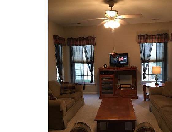 Fantastic home in the sought-after 55+ Community of Legacy Oaks. The property boasts a lovely stone front with an open porch to relax. The entry foyer offers a 9' High Ceiling as well as hardwood floors. This move-in-condition home features newer carpets and freshly painted throughout. The Kitchen has an abundance of white 42" cabinets, plenty of storage space, pantry and refrigerator. The bright breakfast room with sliders to the rear patio (with electric shade awning) adjoins the bright Sun room with 2 walls of windows. The lovely Main bedroom has a large walk-in closet as well as a double closet, private bath with over sized stall shower. A generous sized second bedroom has large double closet and is adjacent to hall bath. A convenient laundry leads to the two car garage. This active, friendly community cover common area and lawn maintenance, snow removal, trash, outside pool, clubhouse, tennis and bocce courts, library, social room, card room, billiard and exercise room. A great place to call home. No pets. Non smoking home.