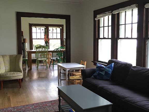 Century home with wonderful light, new deck, new heater, roof on both the house and the detached garage to be completely replaced in a few weeks. Original hardwood throughout, wood trim, built in leaded glass book cases, fireplace with large insert, fenced yard, and garden. Tile in bathrooms and mudroom. The upstairs apartment is newly remodeled with skylights, kitchen, and bathroom. It is accessible via a door to the stairwell from the interior as well as a second floor exterior door. There is a balcony off the second floor door large enough for a table and chairs. The electricity is on a separate meter so that the apartment may be used as rental income.