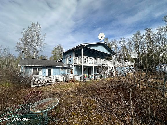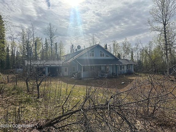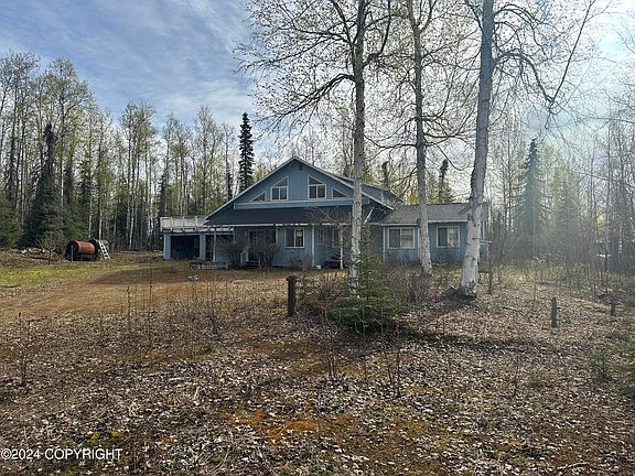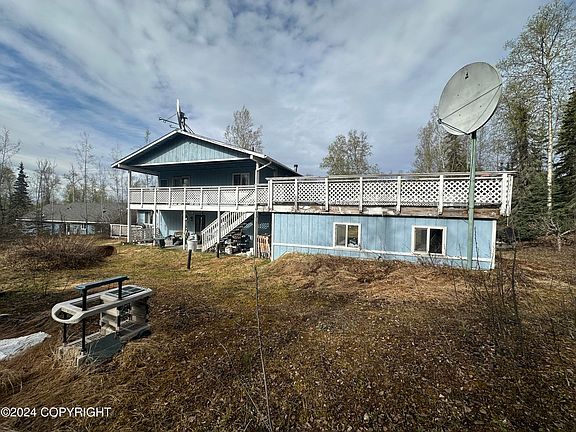 This is a great opportunity for someone looking for a fix & flip or investment property. The home seems to be well built & has tons of potential. Garage is unfinished. Huge decks, lots of character, sits off the road, very unique home. Vandals stole some of copper plumbing & home filled w stuff (seller is not removing from home). Cash or owner finance available. As-Is. Enstar says gas next door.