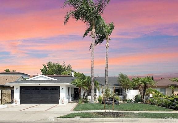 Epic single story that is completely remodeled!! Stunning curb appeal with palm trees, lush landscape, & a water feature. You will fall in love!! Fully renovated with some of the nicest finishes you will ever see!! Spacious open airy floor plan that connects the kitchen, dining, & living room. Great curb appeal. Pride of ownership neighborhood. The upgrades are incredible with a New chef's kitchen with a HUGE island with bar stools & extra cabinets for all the pots & pans. New white shaker cabinets, New quartz counters, New custom marble back splash, New stainless steel appliances, New sink, New recessed lights, New fixtures, New laminate floors, built-in pantry. New paint inside & out. Scraped ceilings. Newer A/C & heater. Double pane windows and slider. The large dining area is open to the kitchen & living room. Very light & bright inside. The living room is very inviting with a cozy fireplace! The master suite is large with mirrored closet doors and a master bath that has an amazing custom shower/bath combo & a rain shower head, New vanity, New Quartz counter tops, and New floors. The guest bedrooms are nice with New floors, New paint, & New mirrored closet doors. Guest bath is upgraded with New Floors, New double vanity, New lighting, and New quartz counter tops. Attached is a 2-car garage with laundry. This wonderful home is centrally located near schools, shopping, dining, and the 5/55/22 freeways.
