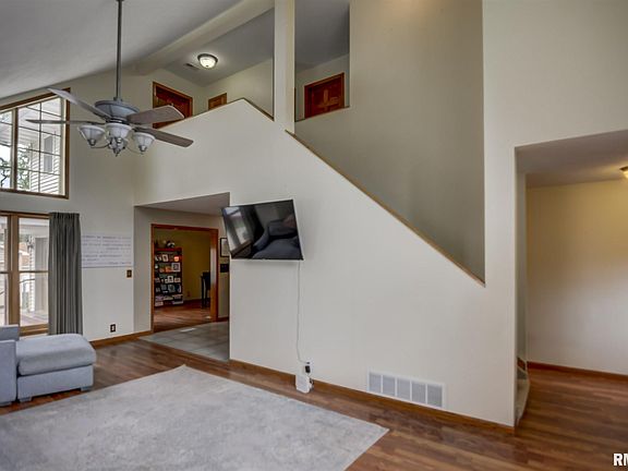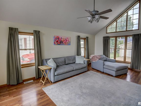 Don't miss this gorgeous home! New in 1995! Beautiful Pella windows & crown molding outline this 1.5 story contemporary home that has a semi open staircase overlooking the LR w/ lots of natural light pouring inside! Paved front patio & landscaping in '16. Large LR, formal DR, kitchen w/pantry, appliances. Laminate floors in LR,DR, main floor bed/office & hall. Main floor bath updated. Main floor laundry!. Master bed w/2 closets plus 2 beds & full bath up redone in 11/18. Lots of closets throughout. Nice sized back entry way. Main floor HVAC 12/17. Brand new roof July, 2019. New fenced-in back yard plus conc. patio. 2.5 car det. garage.