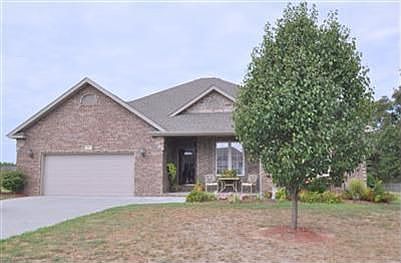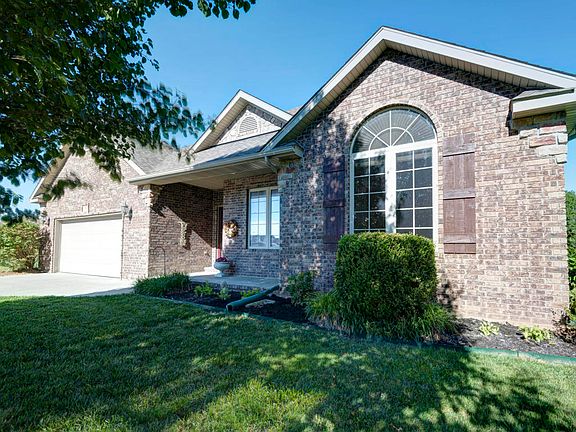 Beautiful all-brick 1,900 sq ft ranch home with extra 156 sq ft enclosed back porch on .95 acres in quiet and desirable Wood Ridge South. Lovely exterior creates the warm and inviting curb appeal with front covered porch ideal for sitting outside and enjoying the beautiful Ozarks. Expansive Kitchen features beautiful cabinetry, generous countertop and island prep space, ample storage and Pantry, and dining combo. Master Suite offers large 17'x12'9" space with tray ceiling and recessed lighting; and 4-fixture Ensuite with roomy standup shower and seating, private commode room, his/her sinks, generous linen closet, and large walk-in closet. Living Room features lovely wood burning fireplace with insert and blower; and is appointed with tile hearth and surround, and decorative wood mantel.