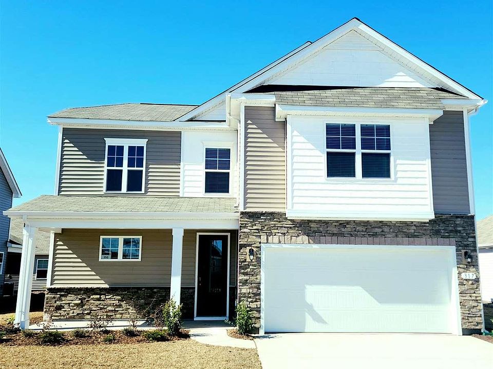 This home has everything you are looking for! Our Belfort plan with stacked stone elevation, an inviting front porch, and 8 ft. entry door. This home offers a spacious kitchen which boasts white painted cabinetry, granite countertops with a large island overlooking the family room, spacious pantry, and stainless Whirlpool appliances. Beautiful laminate flooring throughout the main living areas is a durable alternative to hardwood with easy care and cleanup. First floor primary bedroom suite with a spacious walk-in closet, dual vanity, and large shower with a separate linen closet for additional storage. Three great sized bedrooms, a full bathroom, and a versatile loft space upstairs. This is America's Smart Home! Ask an agent today about our industry leading smart home technology package that is included in each of our homes. The Retreat at Ocean Commons offers proximity to Surfside Beach, Murrells Inlet, and all the shopping, dining, and entertainment in the nearby Market Commons. Natural gas, golf cart friendly community that is only 1 mile to the beach! *Photos and virtual tour are of a similar Belfort home. (Home and community information, including pricing, included features, terms, availability and amenities, are subject to change prior to sale at any time without notice or obligation. Square footages are approximate. Pictures, photographs, colors, features, and sizes are for illustration purposes only and will vary from the homes as built. Equal housing opportunity builder.)