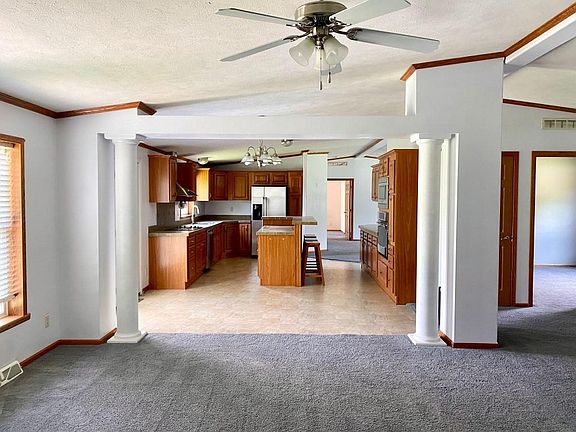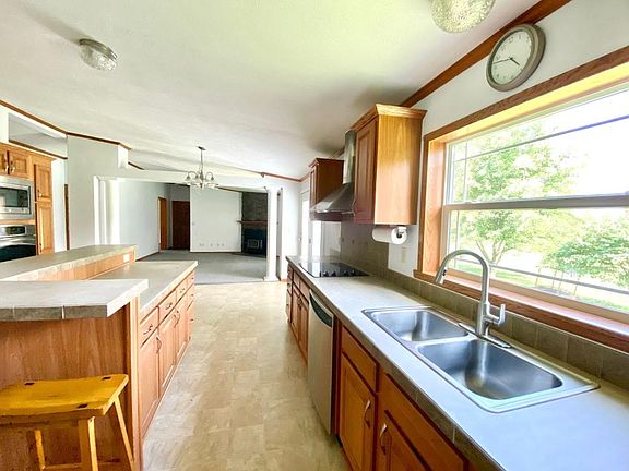 Spacious, 4 Bed 3 Bath ranch-style home on secluded 2-acre m/l lot in Sabetha. Great location within walking distance from schools, public library, parks, and Main Street. Bordered by Austrian and Southern pine trees and private drive creates an outside-of-town beauty. Comfortable 30'x34' two-car attached garage with a short staircase, easily converted to ramp for a no-step living area. 2x6 walls provide added sound reduction and high R-Value. Large windows, vaulted ceiling, and open floor plan create airy atmosphere and exceptional natural light throughout house. Master suite with a bonus room, double walk-in closets, and en suite bath. Matching GE Profile appliances compliment a large kitchen located at the center of the home. Full, unfinished, dry basement comes with stairwell directly to exterior ground level, egress window, in floor plumbing pre-ran for a bathroom, and 9 ft ceilings - ready to be transformed any type of space.