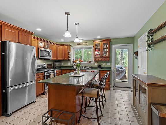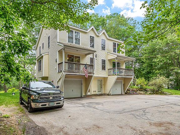 Charming condex townhome tucked away on nearly 3 acres of level land - part open, part wooded- in beautiful Barrington, NH. This 3-bedroom, 1.5-bath home offers the perfect blend of peaceful seclusion and everyday convenience, with no HOA fees and easy access to shopping, local amenities, and major highways. Inside, you'll find a thoughtfully designed open-concept layout featuring a warm cherry-accented kitchen complete with quartz countertops, stainless steel appliances, and a large center island that flows seamlessly into the dining and living areas. The main level also features hardwood and tile flooring, and a convenient half bath. Enjoy the outdoors from either of the two private decks—one off the front and one off the back—perfect for relaxing, entertaining, or soaking in the natural surroundings. Upstairs, the primary bedroom includes double closets and a ceiling fan, with two additional bedrooms, a full bath, and laundry completing the upper level. For those in need of extra space, the 12x34 garage offers workshop potential or room for two smaller vehicles while still leaving space to tinker, store, or create. The property is equipped with FHA heating and central AC, making it comfortable year-round. This home offers the combination of privacy and practicality—a Barrington gem you won't want to miss! Showings to begin at Open House on Saturday June 28th and Sunday June 29th 12:00 - 2:00. OFFER DEADLINE Monday June 30th 2025 @ 5PM.
