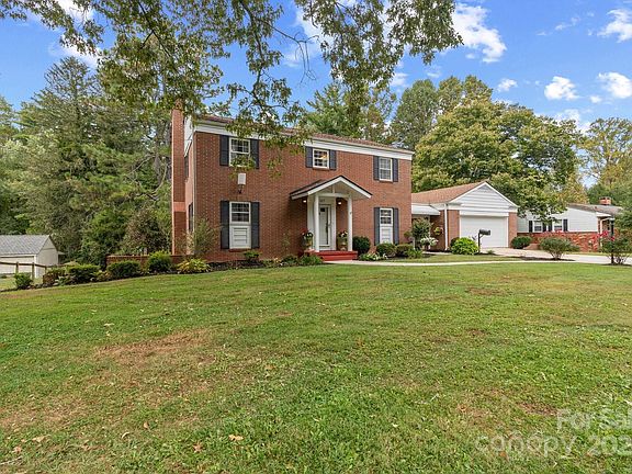 Stately traditional brick home located in the much sought-after downtown Brevard, walking distance to shops, galleries, dining, Franklin Park, Silvermont and Brevard Elementary. Situated on a spacious level lot with park-like setting, this classic designed home offers timeless appeal and comfort. Featuring 4 bedrooms, 2 1/2 baths, a den and an office, and plenty of storage. The home boasts hardwood floors, ceramic tile in kitchen and baths, and 2 cozy wood burning fireplaces, creating a warm and inviting atmosphere. Nestled on a serene setting, enjoy the beauty of lush greenery, mature trees, birds and even white squirrels from a charming deck and patio, adding additional outdoor living space for entertaining and dining. This picturesque setting provides a peaceful retreat while still being conveniently located in downtown Brevard. With its prime location and abundant space, this property is a rare find.