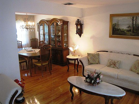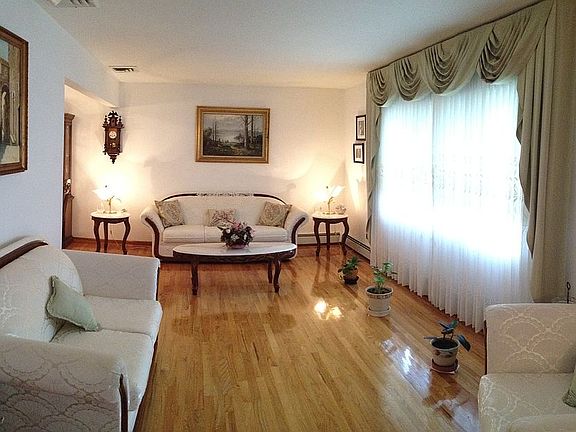 Charming & Spacious Bi-level Located on a Cul-De-Sac offers large Rms. 1st Flr feat gleaming Hard Wood throughout; Living Room, Dining room. Kitchen w/ plenty of cabinet space. Hallway leads to Master Bedroom w/1/2 Bath plus 2 large Bedrooms and Main Bath. Ground Flr could be potential In-Law-Suite w/Tile Floors throughout. Features 2nd Eat-In Kitchen, 1/2 Bath and Family Rm w/Sliders to large yard. Built-in 2-car garage, Central AC and Gas Heat. Short distance to schools, public transp.