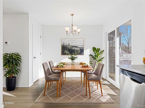 This beautifully updated end-unit townhome offers both charm and modern comfort. A winding walkway leads to the covered front porch, a rare and inviting feature that sets this home apart. Situated next to the association greenbelt, it feels like an extension of your own yard, while the sloping hill behind the home creates a sense of privacy and openness. Step inside to fresh paint and brand-new flooring that make the space feel bright and welcoming. The living room flows effortlessly into the stylishly updated kitchen, where sleek quartz countertops, stainless steel appliances, and modern lighting create a fresh and functional space. Upstairs, find two bedrooms, including a private suite with vaulted ceilings and an east-facing balcony perfect for watching the sunrise over town. The beautifully finished basement provides two additional bedrooms, one non-conforming, along with extra living space and an updated three-quarter bath. Recent upgrades include a new furnace in 2024, quartz countertops in 2025, refreshed bathrooms with new vanities, mirrors, and toilets in 2025, and a new bathtub and shower surround in 2019. With updated flooring, lighting, paint, and a new basement window in 2025, the home feels completely refreshed. Central air and radon mitigation, rare in this community, add even more value. With easy access to parks, shopping, and more, this home blends style, comfort, and convenience in a fantastic location.