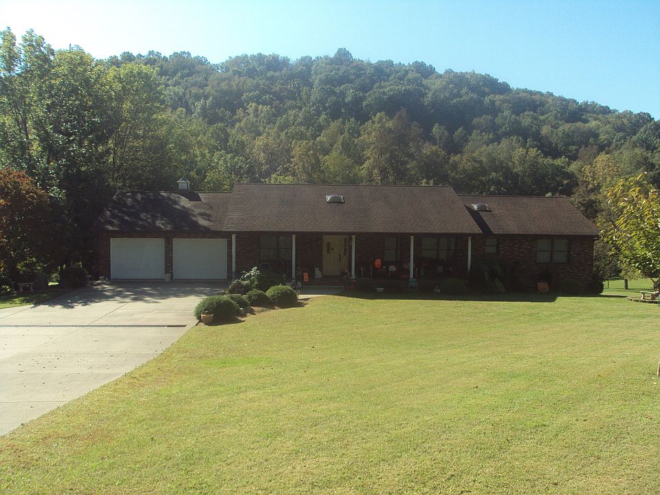 Quality constructed all brick rancher built in 1987 on 2.1 Acre lot on Poplar Fork road in Scott Depot, West Virginia, just 2.5 miles off of I-64, with 4,186 square feet of living space. An additional 520 square foot, attached 2-car garage with closet and attic access. Main floor consist of 13'6" x 28'6" Master Suite with large bedroom and Anderson French door leading to large deck, his and hers walk-in closet, and lavish 10'6"x 12' master bath, with skylight and with large wall mirror above two bowl vanity with spacious drawer and cabinet space, closet, large soaking tub and separate shower, and toilet. Second 6' x 14' bath on main level with doorway leading from hallway, skylight and pocket door leading from large second 13' x 14' bedroom with enormous walk in closet. Linen closet in hallway with 14' x 22' living room with cathedral ceiling, two skylights, Anderson French doors leading onto deck, partially covered, partially exposed, and wood burning fireplace insert with blower. Nice 14' x 19' kitchen, newer built in microwave above drop in oven and electric cooktop, dishwasher, with newer Hickory hardwood floor, refaced cabinets with enough space for eat in area. 7' x 8' Utility room with closet, with 4' x 8' mud room between it, 12' x 14' dining room, 6' x 14' entry way with large walk in coat closet and another skylight off of large covered front porch. Downstairs, enormous third 16' x 28' bedroom with large walk in closet, 10' x 13' kitchen with built in microwave over electric range and cook-stove, 8' x 11' mechanical room with closet, hot water tank 1 year old Trane High Efficiency Electric Furnace with matching outdoor Heat Pump. Super sized 28' x 30' family room with free standing wood burning stove with blower, two Anderson French doors leading onto patio area, partially covered, standard storage closet. Extra large fourth 12' x 24' bedroom with large walk-in closet, then another 6' x 8' mud room off of 616 square foot 22' x 28' workshop located under garage, and a great 6' x 38' storage/panic room under front porch. Many flower beds surround home!