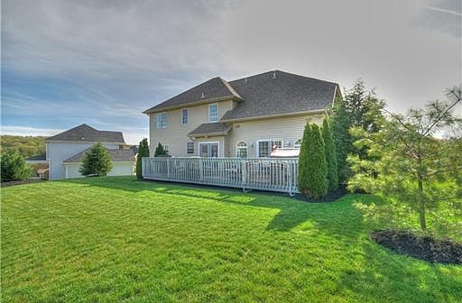 Without a doubt...better than new! RARE FIND! Spacious 4 br colonial features large open kitchen w beautiful custom cabinetry and solid surface countertops. 9' ceilings on first floor and spacious vaulted FR. Double sets of french doors lead to maintenance free decking and table top backyard! All of this positioned on a culdesac lot! This home features all the amenities and upgrades you've been wishing for!