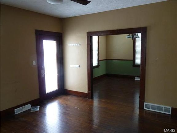 Located in downtown Washington this 1 1/2 story home has four bedrooms & 2 baths. Some of the more recent updates to the home: New roof 3/15, newer kitchen cabinets & counter tops, bath vanities & tile in tub area, refinished wood flooring/tile flooring, newer furnace, some updated light fixtures/ceiling fans, and vinyl siding on exterior of home. One bedroom on main floor of home and three additional bedrooms on the second floor. Full bath on second floor has washer/dryer hookups. Lower level has a finished bonus room which could be office/play room/sleeping room. Fenced level back yard backs to alley and a shed for extra storage. Located in downtown Washington close to parks, schools, shopping, restaurants, movie theater, everything the city has to offer. Bank owned property being sold as is. Bank will do no inspection or warranty.