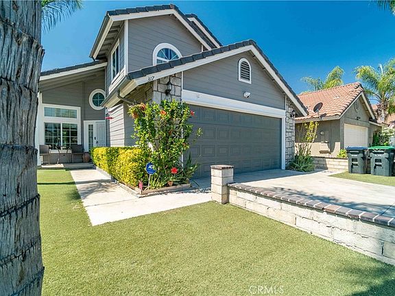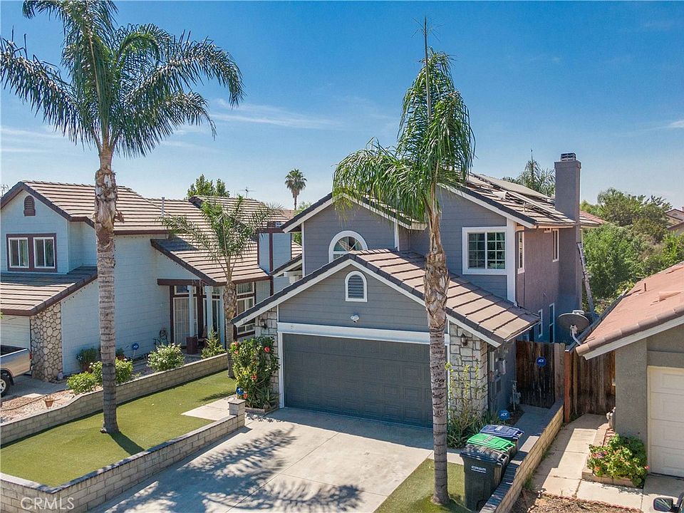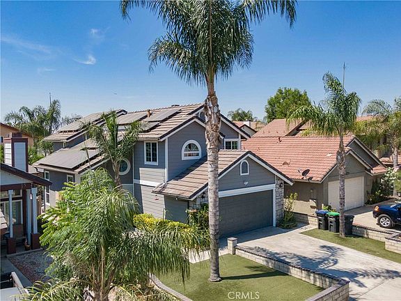 Welcome to 317 Recognition Lane, a great two-story home nestled in Perris, CA. This property spans 1,749 square feet and offers 4 bedrooms, 2.5 bathrooms, and impressive upgrades. The front yard has artificial turf and a newly painted exterior. Step inside and be greeted by the inviting atmosphere into the living room. The main level features new wood vinyl plank flooring and the walls have been freshly painted in a stylish grey hue. The kitchen has been beautifully renovated, boasting newer cabinets and stunning granite countertops. The adjacent eating area is ideal for intimate gatherings or casual meals. The main level also includes the family room, main floor bathroom and laundry room that leads into the two car garage. Up the redone staircase, retreat to the spacious primary bedroom suite with primary bathroom complete with a whirlpool bathtub for ultimate relaxation and rejuvenation. The primary closet also includes a floor safe for all your valuables to be secured. The remaining three bedrooms are generously sized and offer comfortable accommodations along with a full bathroom. This property truly embraces the concept of a "Smart Home" with built-in Alexa devices in the attic and a built-in speaker system in the walls. The backyard has four types of fruit trees and four grape vine trees to adorn the low maintenance backyard connected to an automatic drip system. Spa hookups with 220 volts are available. This home also features a water filtration system, ultra-violet sanitizer, boosting fan in the home and air cleaner system with the added bonus of solar, you'll enjoy energy efficiency and reduced utility costs. Each panel has microinverters, with one set of 26 panels that are 235 watts and the set of 10 panels that are 400 watts. Other notable features of this property include new vinyl windows, newer carpeting and a gas fireplace in the family room for cozy evenings. Don't miss the opportunity to own this turnkey home with no HOA and close to the park, schools and the freeway! Perfect home for a family or as an investment property. Home is currently being ran as a lucrative short term rental that can be a great business opportunity! Call me for more info!