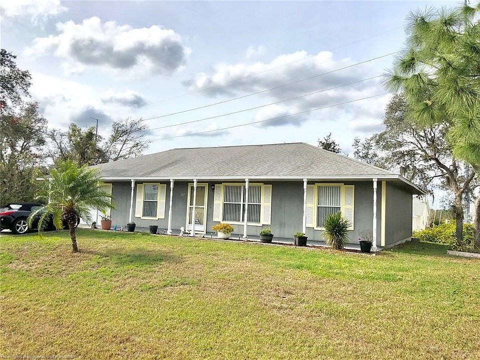 Super convenient location and cutie home with split floor plan and nice size bathrooms. Cathedral ceilings, tile flooring and sliders opening up to the rear lanai porch. Kitchen has planters shelving for extra storage and or decorations. Close to just about everything yet located out of the way a little.