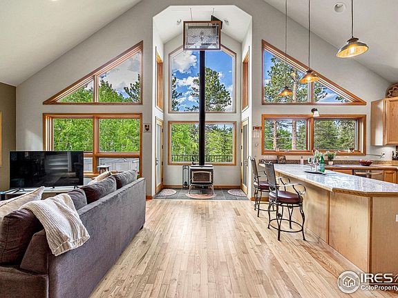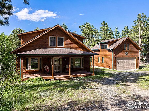 Welcome to Bar K Ranch...your home in the High Country. Beautiful custom built home (in-floor RADIANT heat) including large detached garage (+ loft SQFT studio potential) sitting amidst the ponderosa pines & aspen groves. Home is an open floor plan with a gorgeous great room; soaring vaulted ceiling, wall of windows, wonderful natural light, hickory floors, efficient wood + gas stoves, & more. Kitchen offers everything including the views out the back + walk-in pantry. Primary suite is the whole 2nd floor with dual walk-in closets & large 5 pc bath. Lower level offers walkout basement w/ gaming space + rec room & more potential to finish. Property is mildy sloped with flat useable land/backyard and BACKS to open space. Bar-K association is VOLUNTARY w/ very low fees & includes access to multiple lakes, horse pastures, community stable & garden, & more. It's 12min to Best Brunch in Boulder County aka The Merc in Jamestown! National forest borders Bar-K + Indian Peaks Wilderness, Rocky Mountain National Park, Brainard Lake, & St Vrain trail. 30 min to Boulder!
