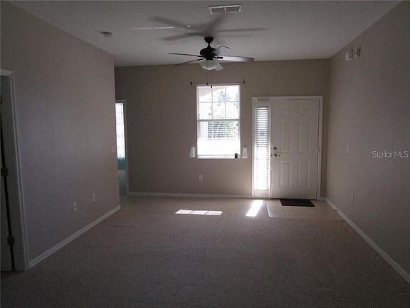 Beautiful home in a small subdivision centrally located off of Bay St/Hwy 19 in Eustis. Spacious living/dining room. Kitchen features stainless steel appliances, pantry, breakfast nook and laundry room with washer and dryer. Master bedroom has a walk-in closet and the master bath features a walk in shower. Guest bath has a tub/shower combo. Sliding doors lead to the screened lanai overlooking the fully fenced and private backyard with lush landscaping. 2 car garage with door opener, sprinkler system and much more. No smoking or pets allowed. Rent includes lawn service.