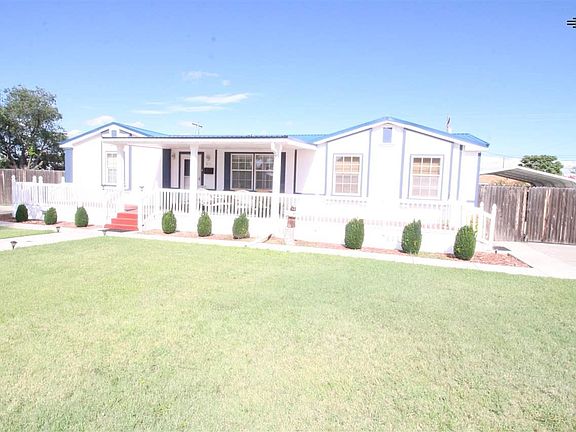 This is a beautiful triple wide Manufactured home put down on a permanent permitted foundation, the home has so much to offer, included are 3 large bedrooms with walk in closets, 2 living areas ( family room with fireplace and front living room), The kitchen is located in the center of the home with island bar, extra cabinet storage, pantry, built in Microwave, free standing range/oven, refrigerator and lots of counter space, Dining is off the kitchen and has area for hutch and cabinets, Utility room and large storage closets. The Den is on the back side of the home with wood burning fireplace and patio door opening to out back covered wooded deck, Extras in this home are large covered front porch, concrete circle drive, front and back sprinkler system, storage and work shop, Car Storage is a 2 car carport on large concrete parking pad big enough for RV storage. Make this Beautiful Home Yours!!! Call to see today!!!