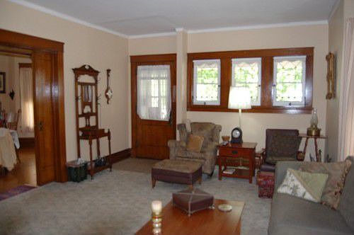 A gorgeous Chicago-style brick bungalow, this home is listed in archive of historic and period houses. Registry # 0050034. This home has been refurbished the past several years to return this home into the jewel it is, including updated electric and restored hardwood floors. Beautiful leaded glass windows, original wood trim throughout, pocket doors, corian countertop in kitchen, bath in the basement, and apartment over the two-car garage (which also has stained glass windows). If you like this era of homes, this is a must-see. Listing office has a list of complete improvements that have been done. Upstairs sleeping porch 6.8x8.3, upstairs landing 11.10x8.3. Garage has a basement. 3rd bath is in the apartment. New Trex back deck is also a lovely respite on summer nights.