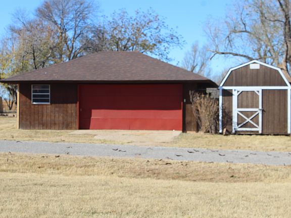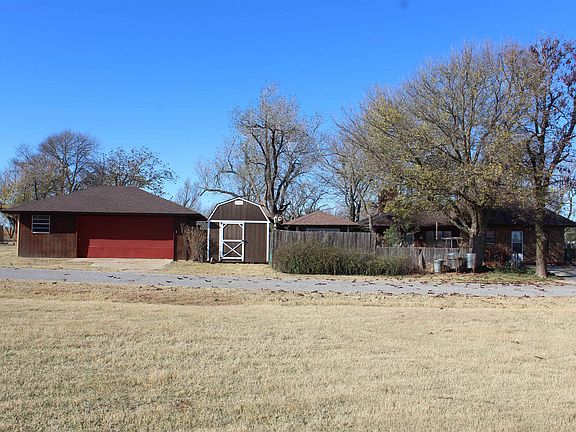 Here's a great opportunity to relocate to a quiet community in Northwest Oklahoma. This home has been very well cared for and seen multiple updates over the years. The home has a nice kitchen, dining area, 2 bedrooms, 1 bathroom, a large living room with a double sided woodburning fireplace, and a large sunroom. The current owner utilized the room on the west side of the fireplace as a 3rd bedroom. The home has central heat/air, several new windows, and nice laminate flooring in several room. The sunroom is the perfect place to relax and enjoy your plants! There is one portable storage building, one permanent storage building, a oversized 2 car garage with a power overhead door, and a set of double hinged doors. There is additional small storage building and a greenhouse frame ready for you to show your green thumb. The lot is just over 1/2 an acre. The house is on rural water but there is a private well for watering the lawn. The home, permanent storage building, and detached garage all received a brand new roof in September 2023. Come see this home in SE Woodward County.