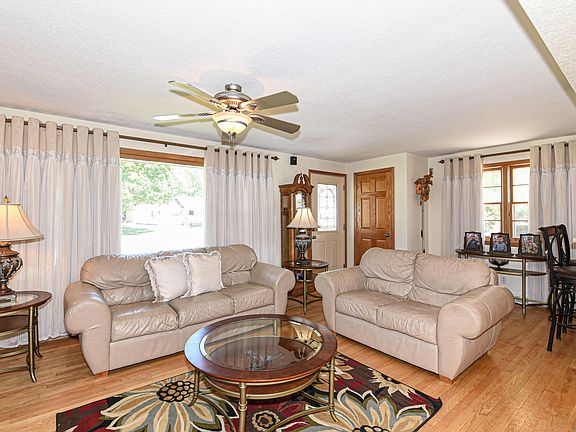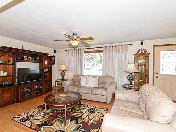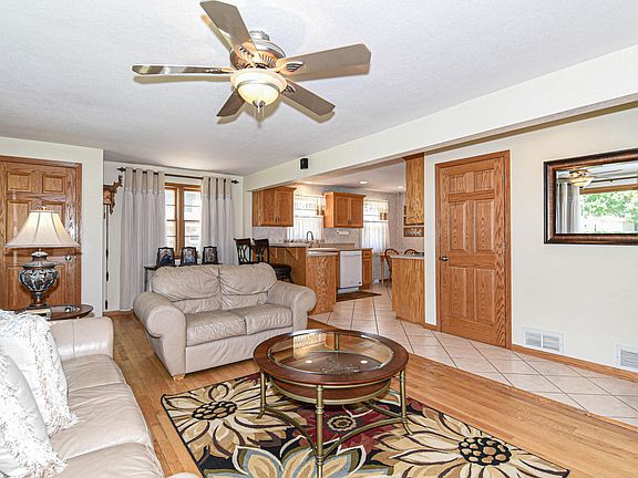 Welcome Home to this updated all brick 3BR, 2BA ranch in beautiful Burlington! This home has it all! The main floor features a large, open concept living room with hdwd floors, The remodeled kitchen features custom cabinets with over cabinet lighting, tile floor, recessed lighting & breakfast bar. Main bath has been remodeled with tile floor and tile tub surround. Huge master bedroom has hdwd floors & large closet. High & Dry lower level features finished rec room & bonus room, brand new full bath, laundry, storage, & workshop area. All doors have been replaced with 6 panel solid oak doors. Outside is a detached all brick 2.5 car garage, shed & nicely landscaped yard! Updates incl: garage roof(2020); house roof(2016); fridge, stove, dishwasher(2019); Furnace(2015). Don't Miss It!