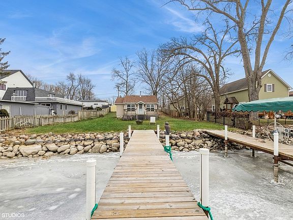 Welcome to this cozy 1 bed 1 bath cottage on the Fox River. Sitting on a large lot featuring beautiful views and the backyard, perfect for bonfires or entertaining. This property has 2 private piers and a boat lift to store your boats or any lake toys you may have. This home also offers a spacious deck, wood burning fireplace, eat in kitchen with plenty of storage and cabinet space. The room right off the kitchen can be used as a formal dining space or extra living room. One Car Garage, long driveway, and two extra spots for parking. Close to downtown McHenry with great restaurants, bars, boutiques and more!