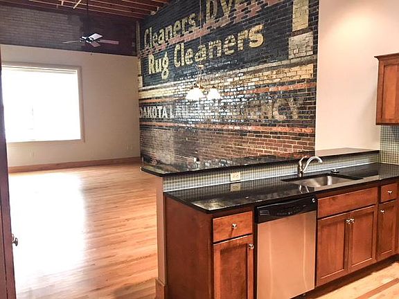 Located in the heart of downtown Sioux Falls, directly across from the historic State Theater, this loft apartment boasts high beam ceilings and original painted brick artwork from the 1940s. High end finishes include stainless steel appliances, stone countertops, hardwood floors, a renovated bathroom with a huge walk-in shower and in-floor heat, walk-in closet and in unit laundry. You are just steps away from amazing eateries, bars and entertainment. Onsite parking and storage included. Owner pays garbage, water, sewer.