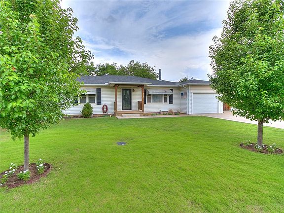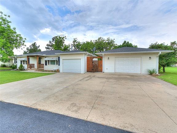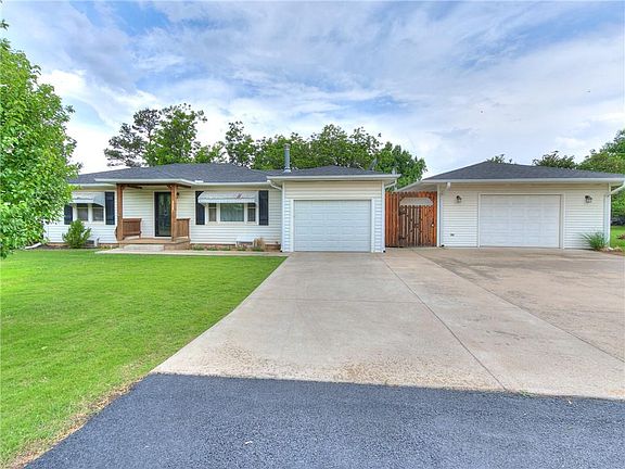 Country living at its best, this home has been immaculately kept. The kitchen has gorgeous custom oak cabinets with pull out drawers, 2 lazy Susan cabinets, built in spice shelves, and a center island with electric, tile flooring & matching appliances. The master bedroom has beautiful built in oak dresser drawers, a desk and a large walk-in closet with ample shoe storage. The added (20x32) shop is a must see with concrete floors, 2 storage closets, a bathroom, a wood burning stove, an American Standard split unit for cooling and extra garage parking. In the shop a section could be converted to living/bedroom space. The roof was installed in 2020, the HVAC in 2021, the water heater in 2022, microwave in 2023 and the washer in 2021. Other great features include a driveway for up to 8 vehicles, composite deck, gutters and siding on all the outside, newer windows, 3 pecan trees and more. Located only 30 minutes from Edmond and 15 minutes from Cedar Valley Golf course, this home is a true doll house.