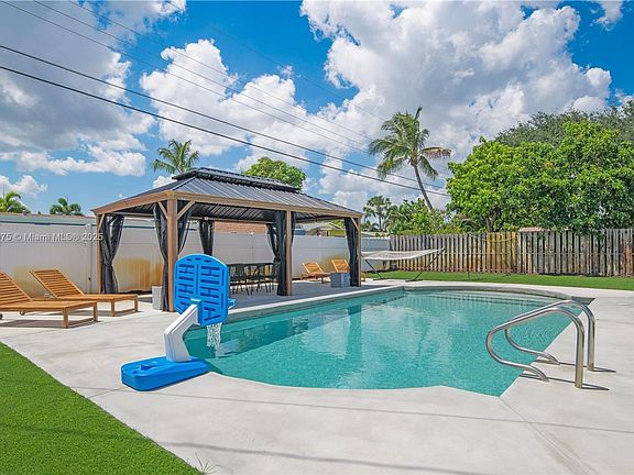 See Virtual Tour. You will definitely enjoy your stay in this fully furnished home located in a great neighborhood only 6 minutes to everything beautiful Deerfield Beach has to offer. The ample backyard offers plenty of space and games to entertain and for the kids to play while enjoying the sunset from the pool. The home features a circular driveway with room for a boat or jet skis, all impact windows and doors, updated floors and bathrooms, new washer and dryer, new indoor and outdoor furniture, new gazebo, new synthetic lawn throughout the backyard, new TV's in every room, and a very well-equipped gym.