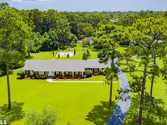 Beautiful remodeled designer home in the heart of Foley. Home sits on 1.86 park-like acres on a corner lot, beautifully landscaped with plenty of oak trees and a large circular driveway. 3 large bedrooms including the master suite, 2.5 bathrooms, spacious living room, separate dining room, new open concept custom kitchen with stainless appliances and quartz counter tops, 18x16 great room, two car attached garage, new roof, and a private office off the garage that offers great privacy for those working from home. Custom details around every corner of this home. Chandelier in the master bedroom does not convey with the sale of the home (Family Heirloom). You must see this property to appreciate the labor of love that went into designing it.