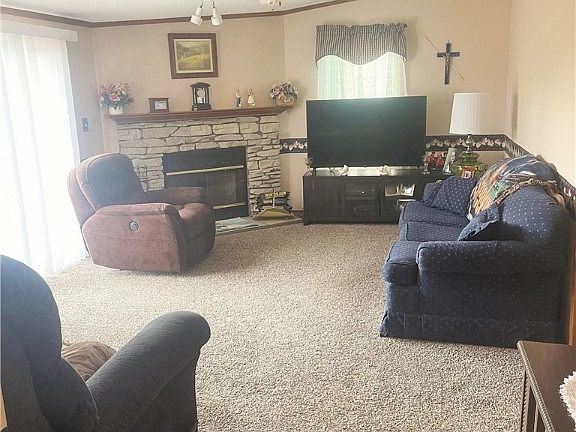 Perfect low-maintenance, one-level living in the Liberty Hall community of Fairchance boasts a warm and welcoming open-concept design plan! Family room with woodburning fireplace, stainless appliance package in the kitchen complimented by a tiled backsplash and open access to the dining room! Formal living room, main level laundry with washer and dryer, lots of closet space in the 3 bedrooms, new plush carpeting and rich wood flooring, 2 baths with an upgraded master en-suite with master bath enhanced by dual vanity, soaker tub and skylight! Lovely outdoor space has a rear deck overlooking the fenced backyard, ideal for pets, playing and parties, and a fun-in-the-sun pool with deck! Detached garage with storage shelving and off-street parking, too! Just minutes to the park and major roadways for an easy commute to Uniontown or Morgantown!