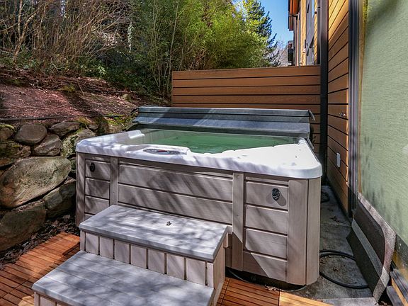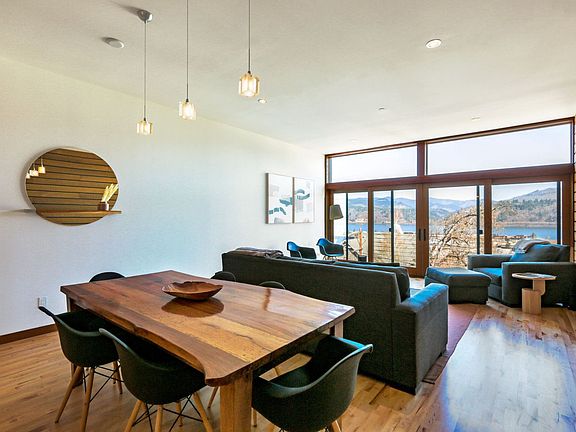 Delicious is the best word to describe this luxurious loft. Imagine watching the mighty Columbia through huge floor-to-ceiling windows and surveying the magic of Hood River. This apartment is a perfect winter snuggle zone, featuring comfortable and tasteful furnishings and artful decor that add to the sweet ambiance. Comes with two king-size beds, one full-twin size bed, and two sets of twin bunks. Soak in the hot tub after a big day on the mountain. Stroll downtown to take advantage of all the Hood River hot spots. The Columbia River Gorge, with its mountains and rivers, offers the vacationer and recreation enthusiast the opportunity to windsurf, mountain bike, kayak, golf, ski, hike, fish, or just relax in the unhurried pace of a natural paradise. Historic buildings line the beautifully scenic streets of downtown Hood River, with a bustling shopping district featuring boutiques, designer shops, outdoor adventure gear outfitters, antique shops, art galleries, and no less than 30 restaurants. There are many orchards and vineyards in Hood River. The Hood River Valley is known for its luscious apples, pears, cherries, peaches, and other fruits, and for the view of the majestic snowcapped peak of Mt. Hood. People from all over Oregon make an annual trek in the fall to the many farm stands to stock up on fresh apples and pears. Other produce is available and varies by season. The award-winning Hood River Vineyards is located on a hillside overlooking the Hood River Valley. Their tasting room features traditional wines and fruit liqueurs. The Columbia River Gorge, with its magnificent views, makes this a dream spot for a destination wedding. Hood River's latest distinction is as the windsurfing capital of the world. The winds from the Columbia River Gorge, best during the middle of the day, create ideal conditions for riding the waves. To enjoy the view of 'boardheads' at play, drive to the Columbia Gorge Sailpark or follow Second Street to the waterfront. The Mt. Hood region and its more than sixty miles of forested mountains, 77 waterfalls, and myriad lakes and streams are a rip-roaring mecca for outdoor adventure. The mountain is home to four ski areas and offers the country's only year-round skiing and snowboarding. This is a no-smoking building. Absolutely no smoking inside or outside, including on decks and driveway.