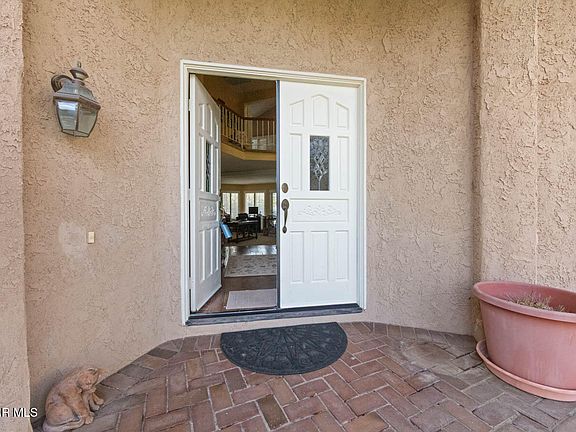 Prestigious Wood Ranch home located in Parkside community on a Cul-de-sac with Lake Privileges. Features of this 4 bedroom, 3 bath, 2063 square foot home include double door tiled entry, stepdown living room, cathedral ceilings, stunning arched windows with custom plantation shutters, formal dining room leads to the kitchen for easy serving. Entertaining family room with wet bar, fireplace, built-in bookcases, slider to lovely manicured yard with patio perfect for luncheons. There is also a laundry room, half bath and access to the garage. The upstairs of the home has 3 bedrooms plus hobby room off of the main bedroom featuring double door entry, pot shelves, two closets, double vanity , tub, shower, separate water closet, There is also a slider off of the main bedroom with a balcony and tech flooring for easy maintenance, offering beautiful sunset views,